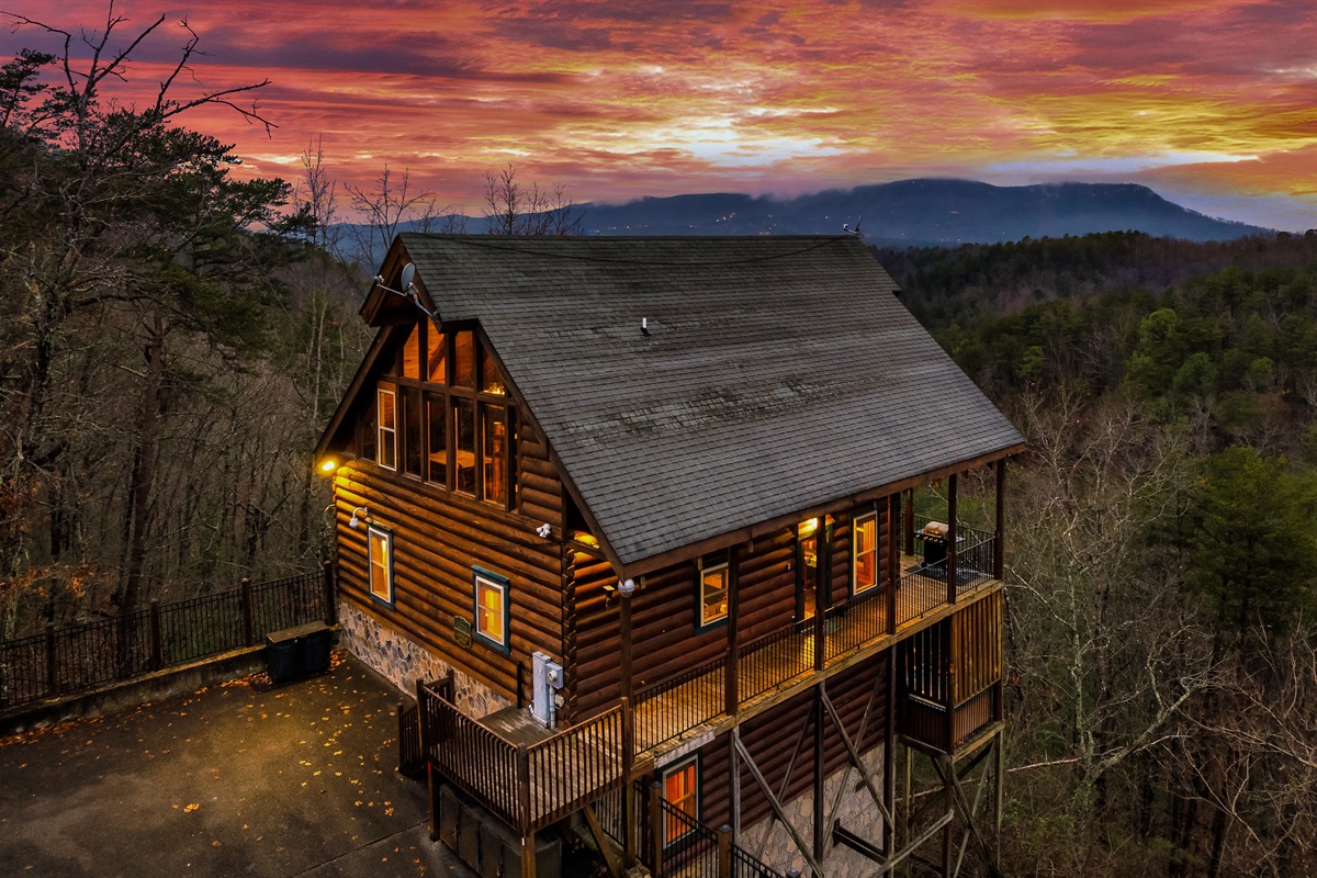 Gather your family and friends at Lazy Bear Lodge, a spacious luxury cabin in the Smoky Mountains. With 6 king bedrooms, a 100-inch cinema, a tropical disco-themed lounge, and decks overlooking breathtaking ridge views, it’s built for connection and unforgettable memories. Relax in the hot tub, cook in the fully stocked kitchen, or fire up the grill while taking in the mountain sunsets.