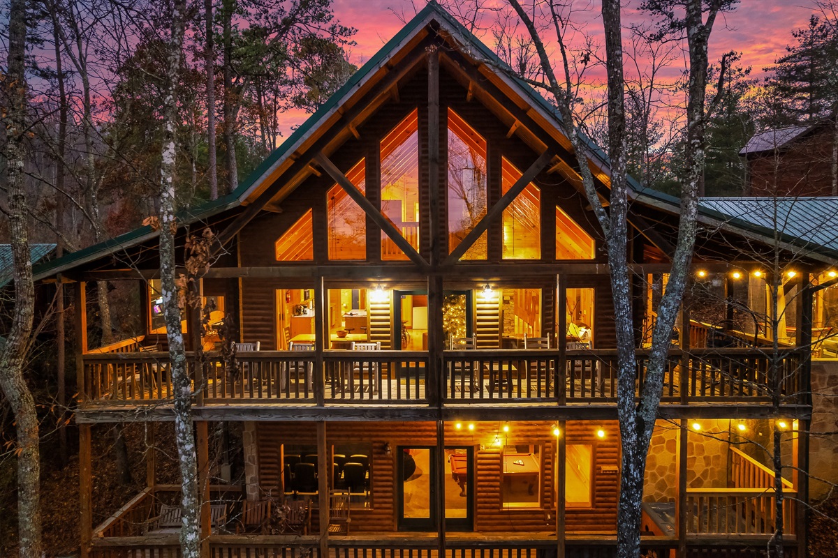 Gather your family and friends at Ridge Creek Cabin, a guest-favorite retreat with magical touches and incredible outdoor living space. With 5 bedrooms (including a whimsical hobbit bunk room), a private theater for 15, a game room packed with arcades and table games, and a covered outdoor lounge with fireplace and grill, it’s designed for connection and fun. Relax in the hot tub, swing on the porch, or enjoy easy access to Dollywood, Pigeon Forge, and the Smokies—all just minutes away.