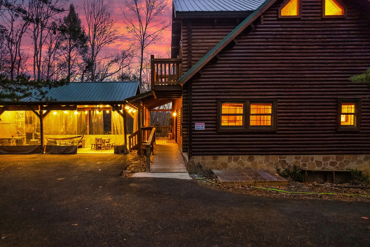 Ridge Creek Cabin is just minutes from Dollywood, Pigeon Forge, Wears Valley, and Sevierville. The cabin is in a peaceful community with flat, paved roads—no steep climbs or tricky access.