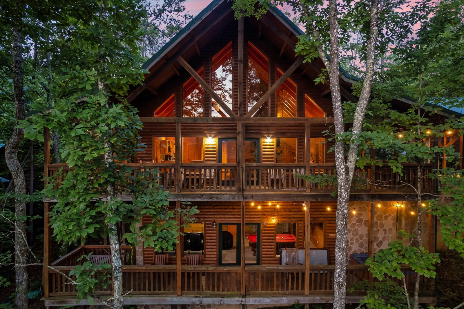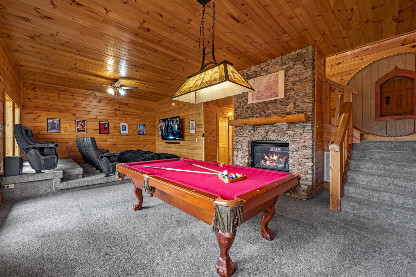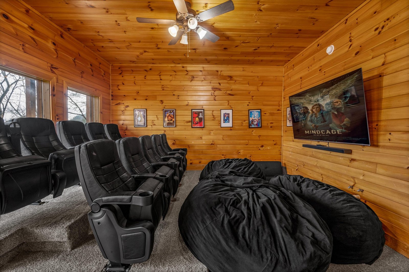 Gather your family and friends at Ridge Creek Cabin, a guest-favorite retreat with magical touches and incredible outdoor living space. With 5 bedrooms (including a whimsical hobbit bunk room), a private theater for 15, a game room packed with arcades and table games, and a covered outdoor lounge with fireplace and grill, it’s designed for connection and fun. Relax in the hot tub, swing on the porch, or enjoy easy access to Dollywood, Pigeon Forge, and the Smokies—all just minutes away.