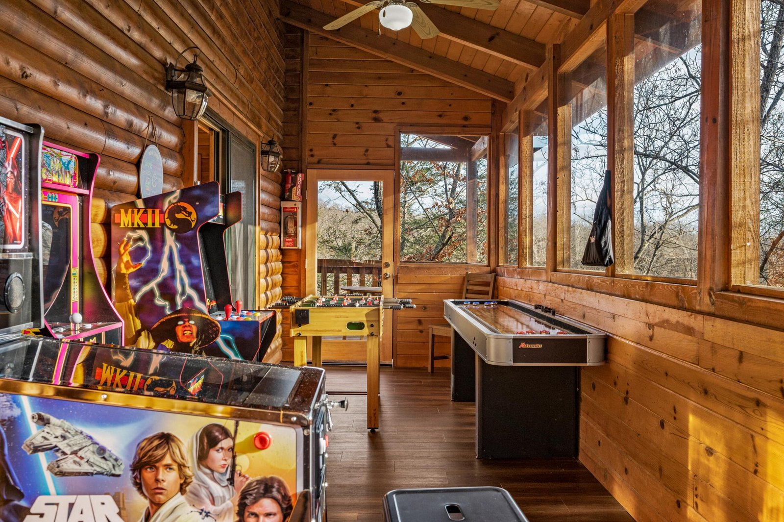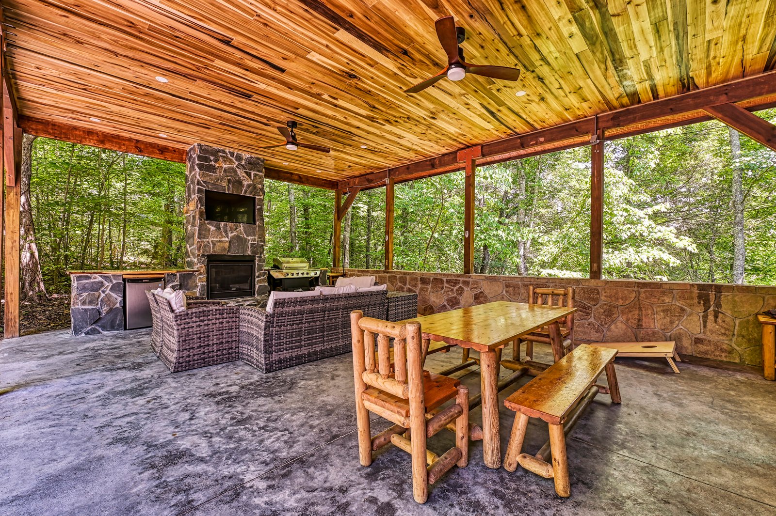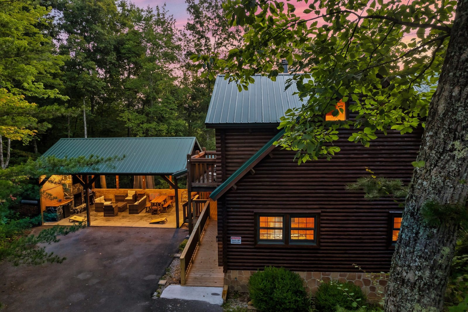 Gather your family and friends at Ridge Creek Cabin, a guest-favorite retreat with magical touches and incredible outdoor living space. With 5 bedrooms (including a whimsical hobbit bunk room), a private theater for 15, a game room packed with arcades and table games, and a covered outdoor lounge with fireplace and grill, it’s designed for connection and fun. Relax in the hot tub, swing on the porch, or enjoy easy access to Dollywood, Pigeon Forge, and the Smokies—all just minutes away.