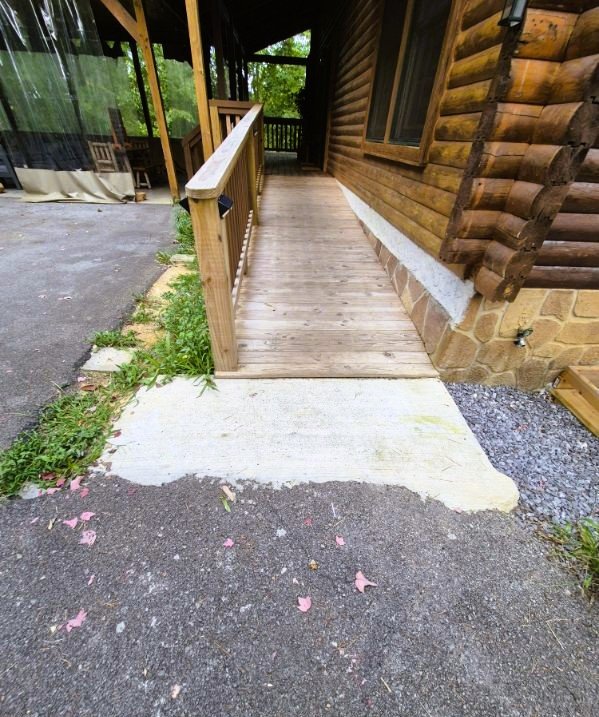 Ridge Creek Cabin is just minutes from Dollywood, Pigeon Forge, Wears Valley, and Sevierville. The cabin is in a peaceful community with flat, paved roads—no steep climbs or tricky access.